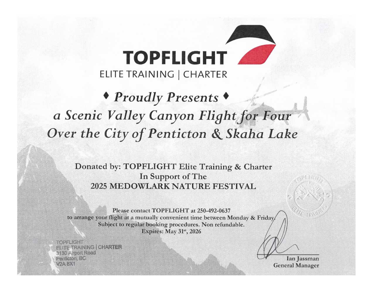 The Frank Venables Theatre is pleased to support the Meadowlark Nature Festival with an auction with an auction item of 2 tickets to the South Okanagan Concert Series. Full Details at Venables Theatre